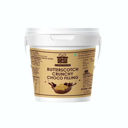 crunchy butterscotch Choco filling is used in many food preprations like Waffles , Shakes , Pancakes , Biscuits , Chocolate center fillings , Ice creams , Cakes , Pastries and many more…
